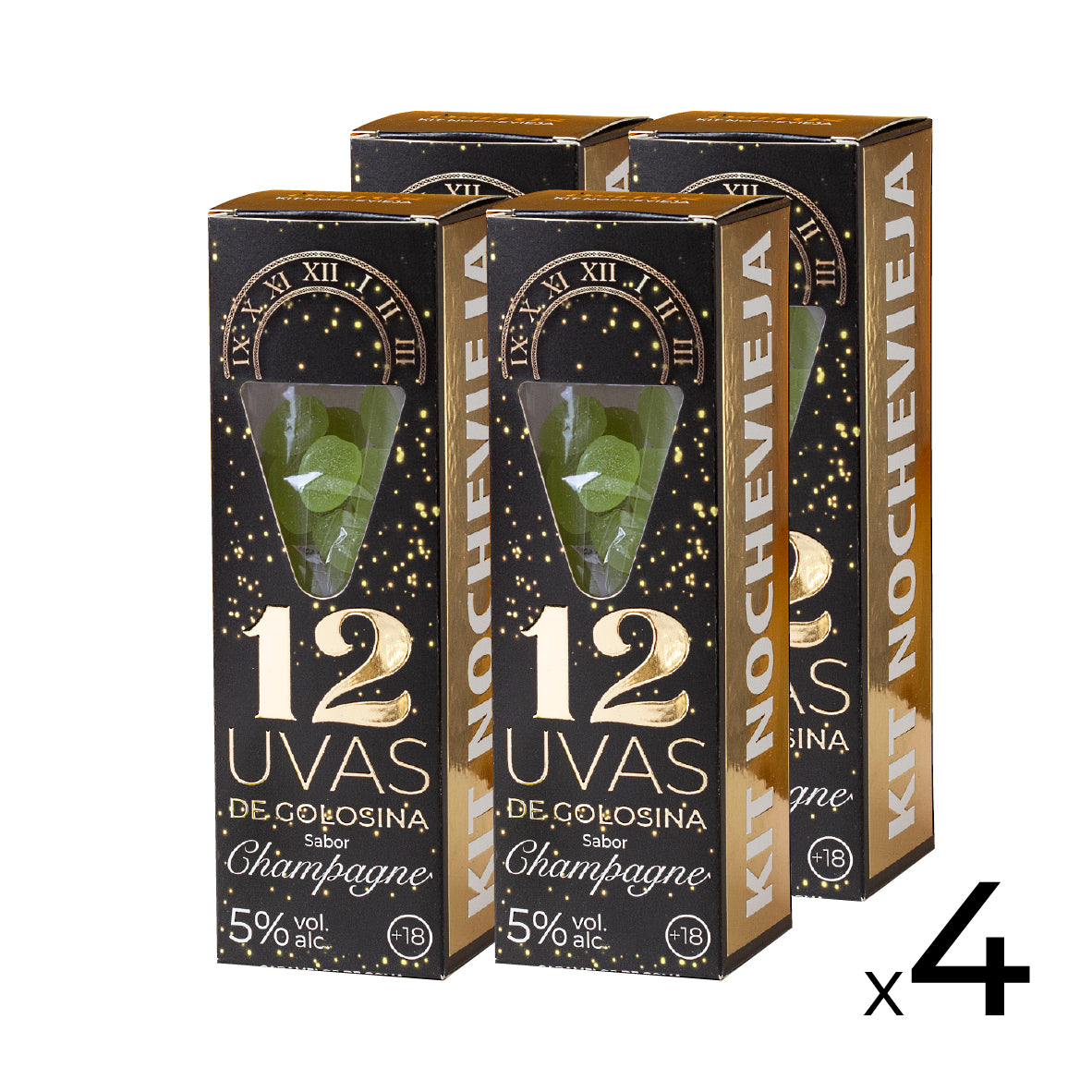 La mejor forma de terminar el año. Cajitas de 12 uvas de golosina sabor champagne. al llevarte 4 el precio baja ❤️